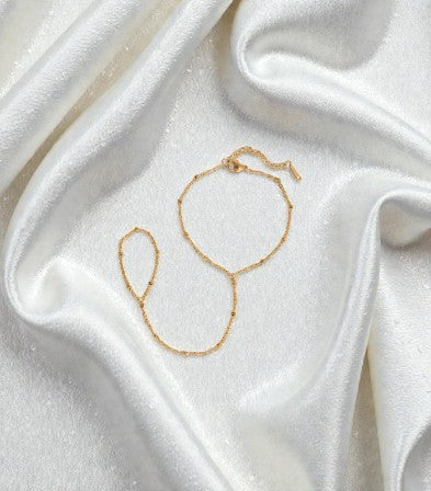 Stainless Steel Rice Bead Chain Ring Bracelet 18K Gold Plated Finger Chain in Gold or Silver